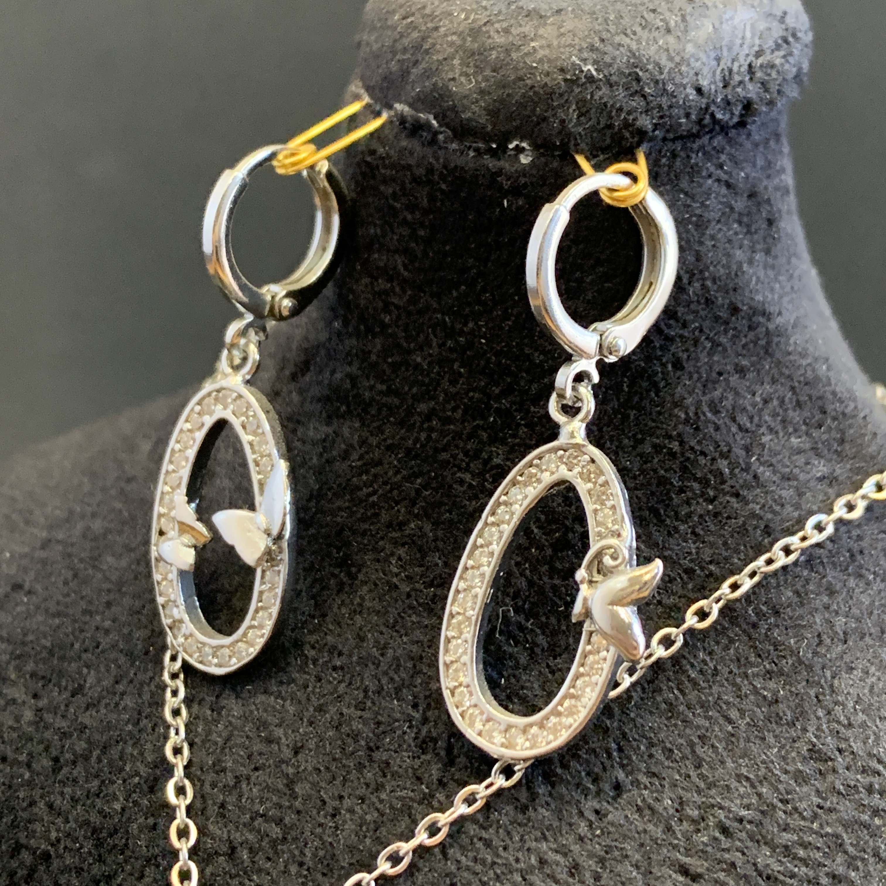 جنس : استیل نوع آبکاری : رادیوم نوع قفل گردنبند : قفلی نوع قفل گوشواره : حلقه ای طول گردنبند : 45 سانت رنگ ثابت ضدحساسیت