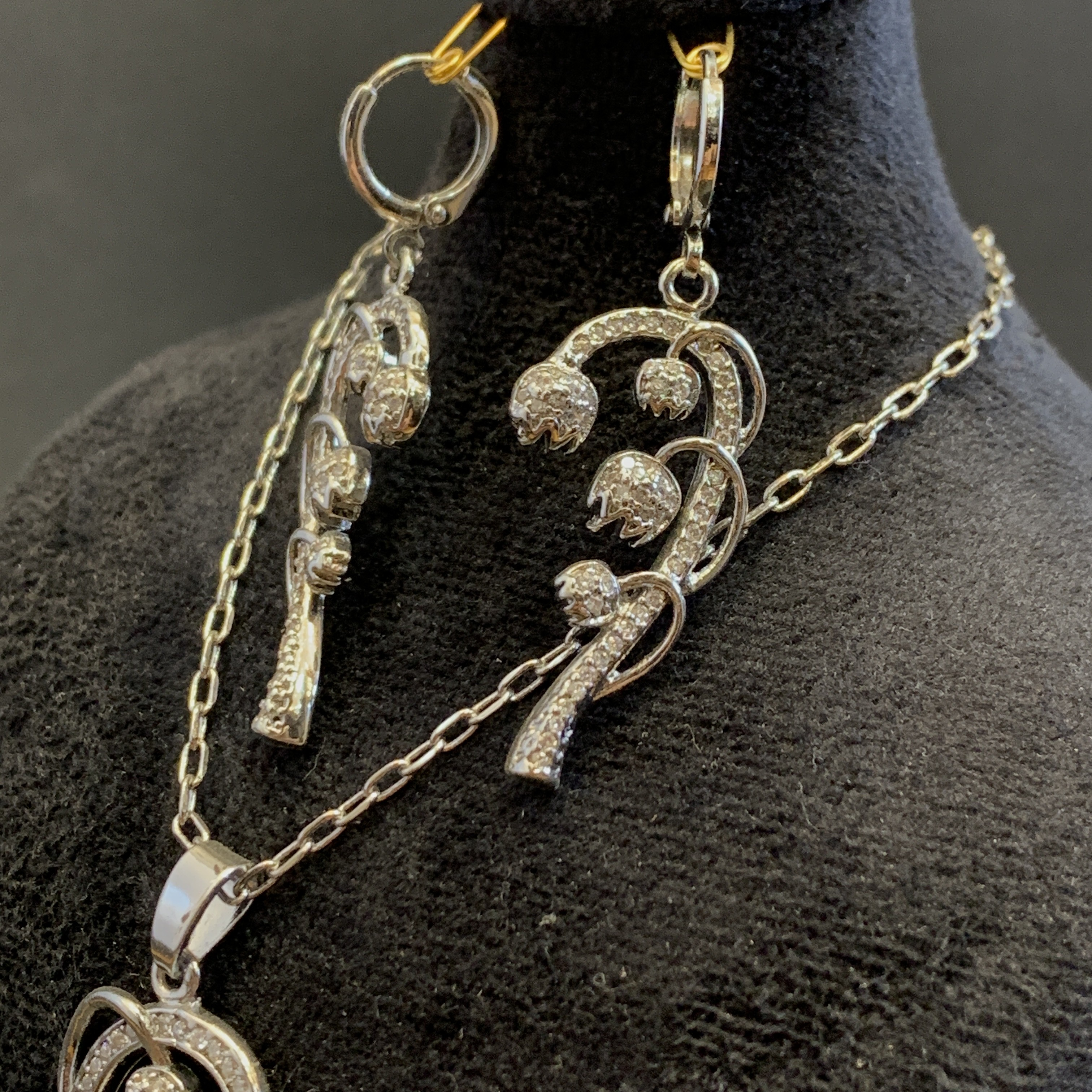 جنس : استیل نوع آبکاری : رادیوم نوع قفل گردنبند : کتابی نوع قفل گوشواره : حلقه ای طول گردنبند : 45 سانت رنگ ثابت ضدحساسیت نگین پایه کاری شده ضد ریزش