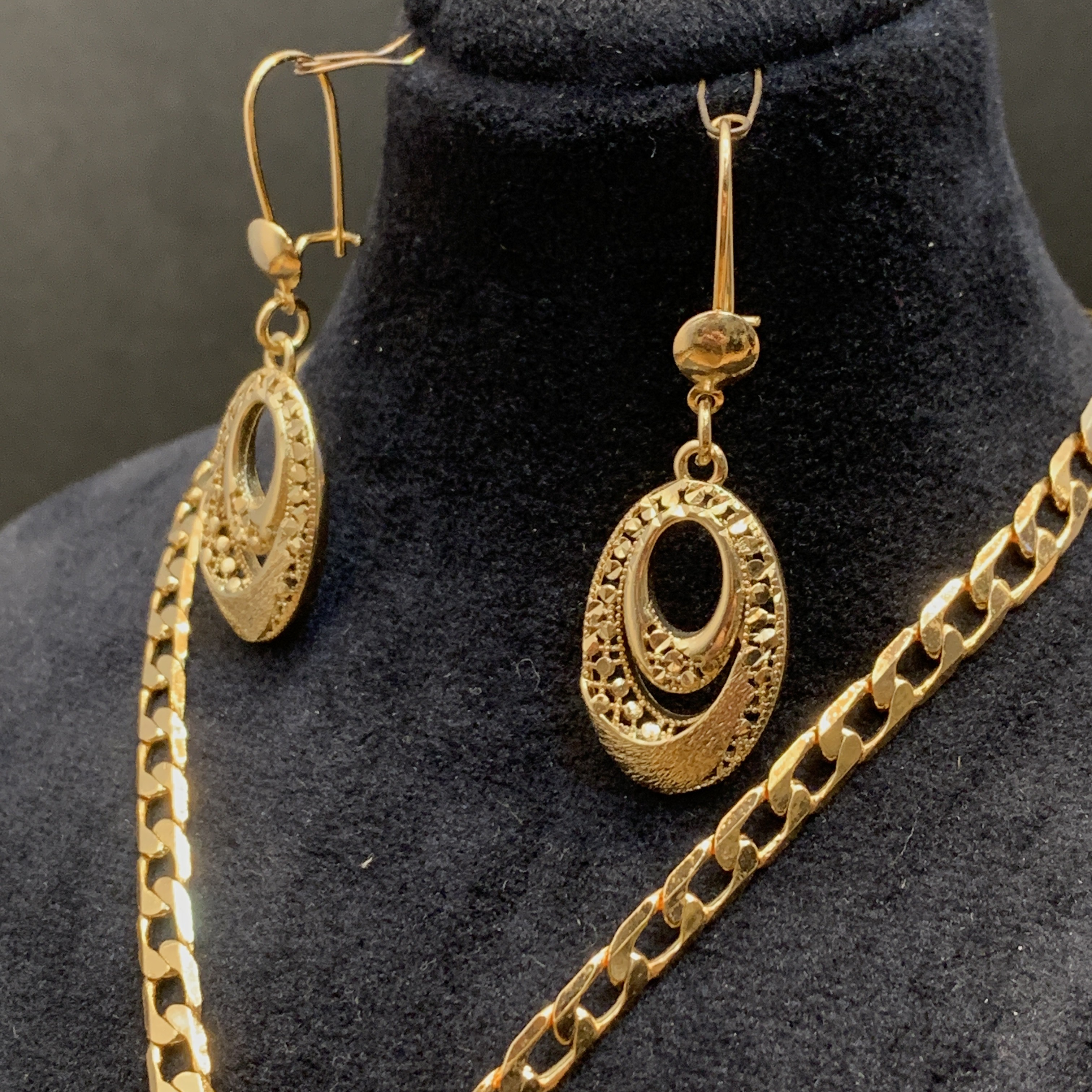 جنس : استیل نوع آبکاری : پنج لایه آبکاری طلا نوع قفل گردنبند: قفلی نوع قفل گوشواره : حلقه ای طول گردنبند : 45 سانت رنگ ثابت ضد حساسیت